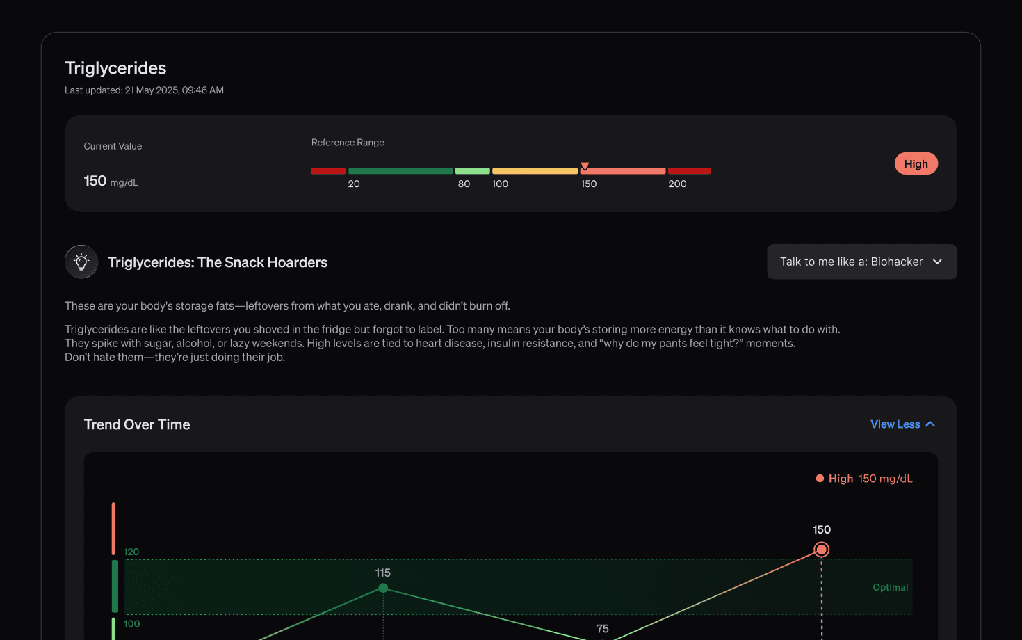 Our target user (health-conscious professionals aged 25–40) wanted understanding, not medical jargon.
