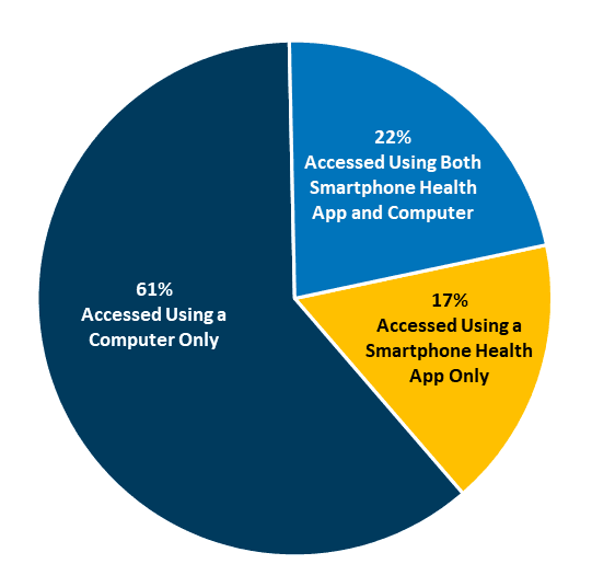 Pie chart showing the devices patients used to access their medical test results. 61% computer only. 17% mobile only. And 22% used both mobile and computer.